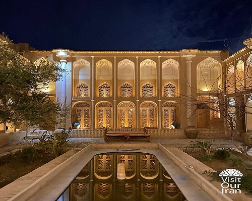 The Iranian House aging more than 250 years, is located in the Kooshk-e-Safi quarter, one of the oldest quarters of Kashan. The 1000m² house, which is constructed on the “flower bed ditch” model, is in fact the exterior part of an immense house which lost its interior part and other annexes over time. After seven successive years of strengthening, restoring and remodeling, this house has emerged as one of the rare traditional residences which have been restored according to scientific and technical principles.